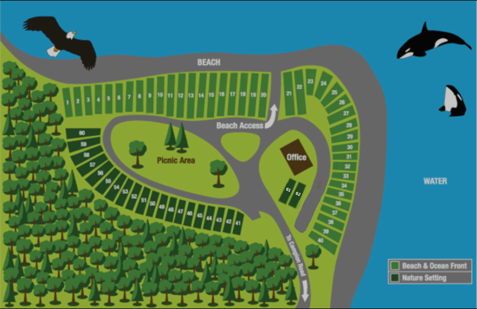 Experience the natural beauty of a secluded ocean beach; listening to the sounds of the waves while sitting around the campfire watching the evening sunset with Mount Baker in the background. The Beachcomber experience is a place for those RV enthusiasts looking to connect with nature. Our campground is simple by design to bring you back to the camping of days gone by. Each site has water, 15 & 30 amp electricity & good wi-fi connection.